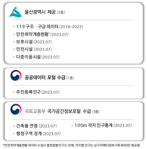 울산광역시 안전취약계층*별 사고현황과 위험요인을 도출을 하여 맞춤형 안전관리 방안을 마련한 사례
